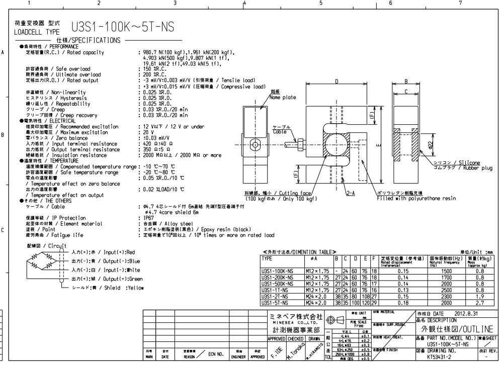日本NMB稱重傳感器U3B1-200k-B傳感器-----負載傳感器工業用測量、產業機械用壓縮型加載裝置: