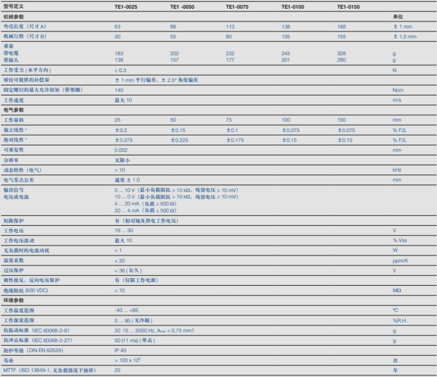 諾沃泰克TE1-0150位移傳感器型號類別技術參數選型安裝等資料信息,如果有