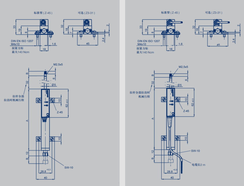 德國諾沃泰克novotechnik直線位移傳感器LS1-0075位移傳感器的使用方法:一般采用給位移傳感器加上一個電壓,諾沃泰克novotechnik電子尺LS1-0075利用其優良的平滑性,來檢測輸出電壓(輸出電阻改變輸出電壓)分壓比。(1)諾沃泰克LS1-0100位移傳感器的使用是帶有一個長的持續傳導軌跡分壓計型傳感器,在控制和測量運用中,適合于絕對位移傳感,其線性精度為士0.05%。具有移動快,壽命長等特點,符合龍門式精密油壓機的控制要求。根據實際要求在油壓機的主缸、液壓墊上分別安裝Kl下滑板式、KTC拉桿式直線位移傳感器。在一個半自動工作過程中,油壓機的主缸、液壓墊分別帶動兩只直線位移傳感器移動,LS1-0100直線位移傳感器將采集到的兩點模擬量值輸入到FX2N-8AD,FX2N-8AD將此模擬輸入數值(此時是電壓輸入),轉換成數字值,并且把他們傳輸到PLC主單元。LS1-0075直線位移傳感器諾沃泰克主缸、液壓墊選用直線位移傳感器的有效測量長度為500mm、400mm。(2)LS1-0100電子尺NOVOTECHNIK使用中的注意事項磁致伸縮位移(液位)傳感器,通過內部非接觸式的測控技術精確地檢測活動磁環的絕對位置來測量被檢測產品的實際位移值的;該傳感器的高精度和高可靠性已被廣泛應用于成千上萬的實際案例中根據供應商提供的資料,強調了本傳感器在使用中必須注意的一些事項。WAk廣州南創電子科技有限公司
