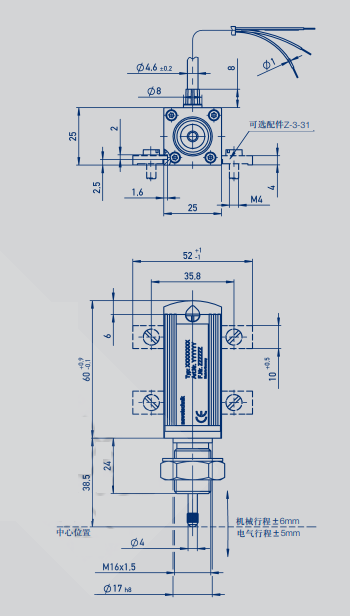 R0L廣州南創電子科技有限公司novotechnikTP1-0050-101-411-101 TP1-0500-101-424-102位移傳感器尺寸圖:R0L廣州南創電子科技有限公司