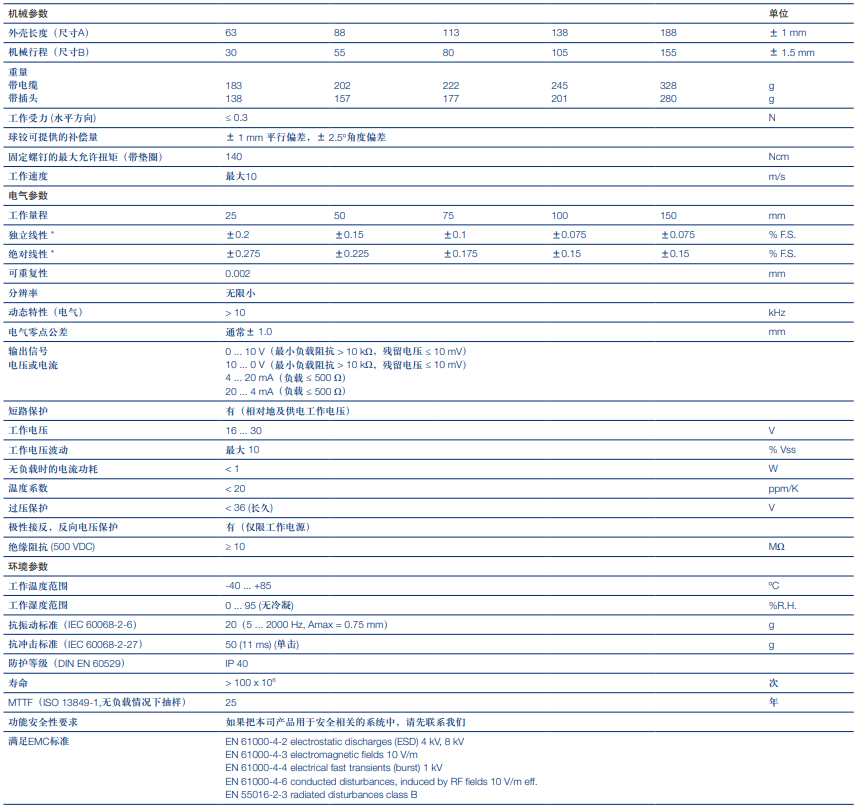 特點: 絕對位置傳感器,運用的是感應測量原理,帶有自由位置標記的非接觸式位置檢測,測量范圍:1000mm, IP67 ,溫度范圍:-40℃-85℃EWJ廣州南創(chuàng)電子科技有限公司