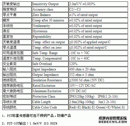 美國OAP PST系列稱重傳感器產品參數圖:AOk廣州南創電子科技有限公司