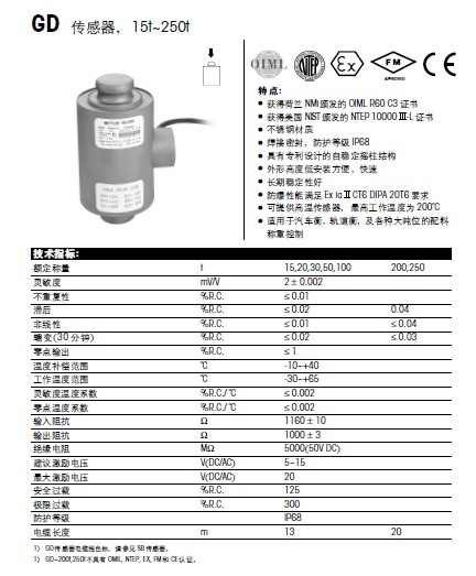 瑞士METTLER TOLEDO GD-30t稱重傳感器技術參數圖: