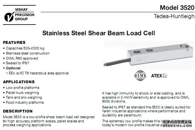 美國Tedea 3520稱重傳感器現貨、價格、產品資料、圖片、貨期、發貨方式、技術參數FMU廣州南創電子科技有限公司