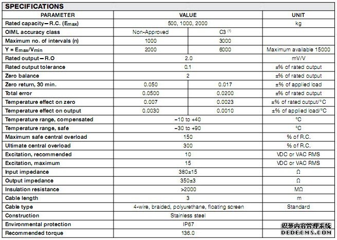 美國Tedea 3520稱重傳感器量程:3520-500kg、3520-1000kg、3520-2000kg。FMU廣州南創電子科技有限公司