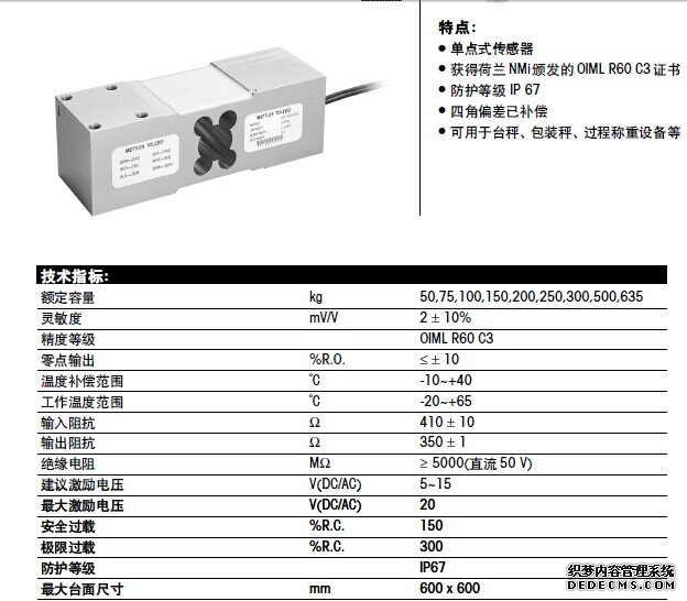 IL-500 IL-500傳感器 Mettler Toledo/托利多IL-1000稱重傳感器7Um廣州南創(chuàng)電子科技有限公司