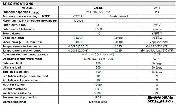 79711: Load Cell, DEB 9423-B10-50k-30P1 50000lb 30ft RTI 3 mv/v 700 OHM WW NTEP IIILOEQ廣州南創電子科技有限公司
