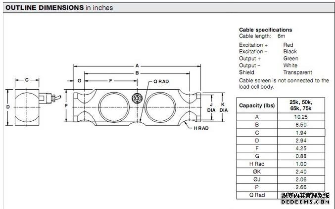 84158: Load Cell, DEB 9323-B10-75k 75000lb 30ft RTI 3mv/v 700 Ohm WW NTEP IIIL 10 MOEQ廣州南創電子科技有限公司