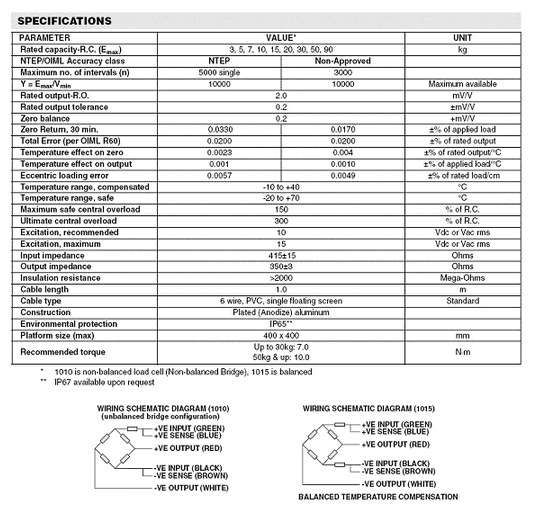 美國特迪亞tedea 1010稱重傳感器產品參數:QVi廣州南創電子科技有限公司