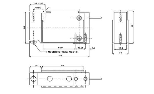 美國特迪亞tedea 1010稱重傳感器產品尺寸圖:QVi廣州南創電子科技有限公司