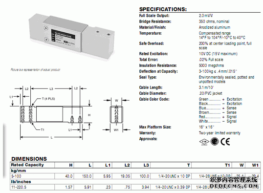 美國RICELAKE RL1040-7KG稱重傳感器規格圖:IM3廣州南創電子科技有限公司