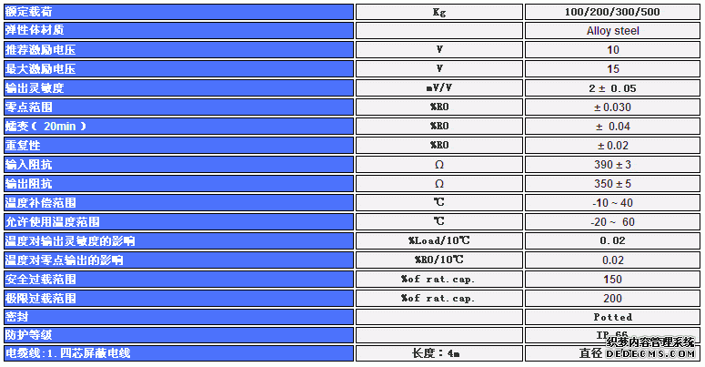 臺灣UTE UNS系列稱重傳感器產品參數圖:2tG廣州南創電子科技有限公司