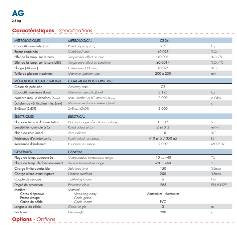• OIML R60認證版最高精準度達 2 000分度值, 2.5千克