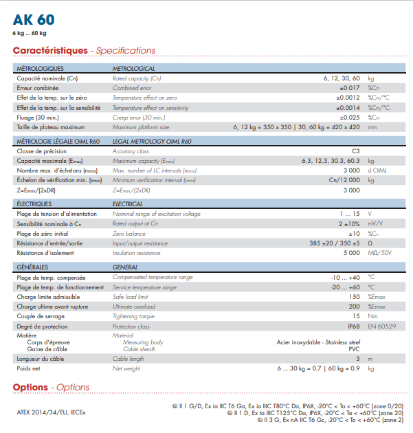 AK-60kg稱(chēng)重傳感器 法國(guó)SCAIME