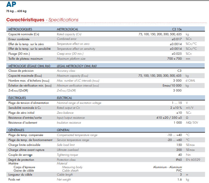 產品名稱:AP-75kg稱重傳感器法國Scaime