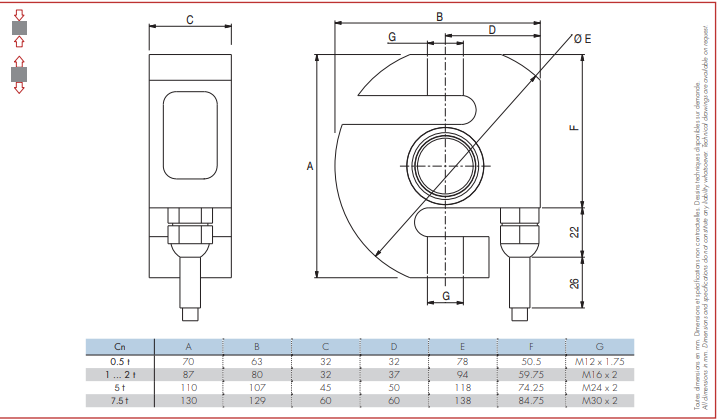 法國Scaime稱重傳感器ZA30X-500KG產品參數圖: