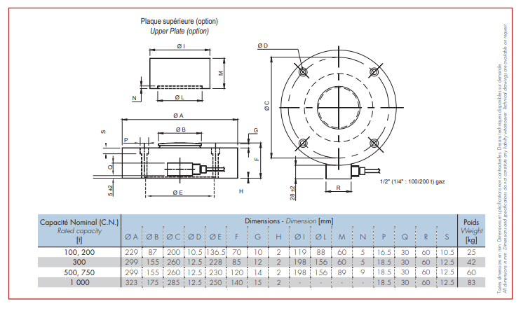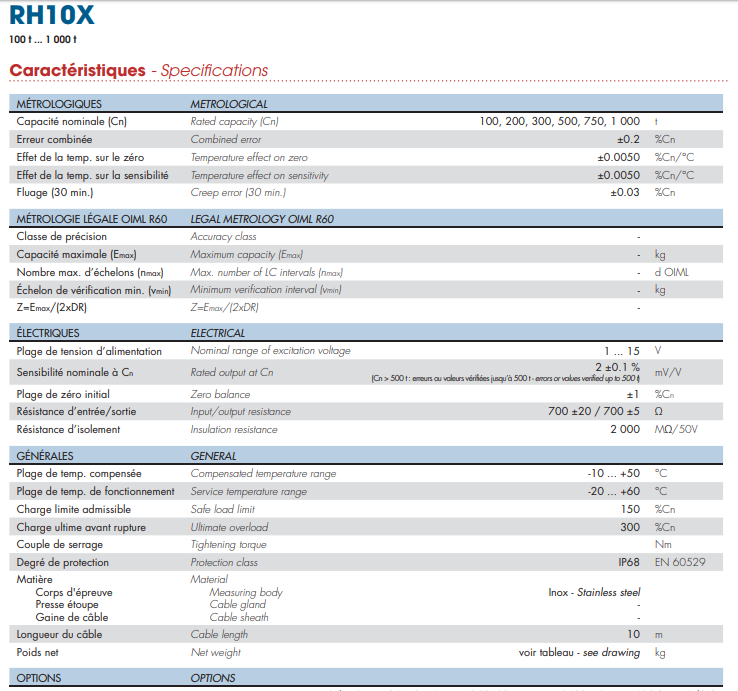 法國世感Scaime稱重傳感器RH10X-100T產品參數圖:PZh廣州南創電子科技有限公司