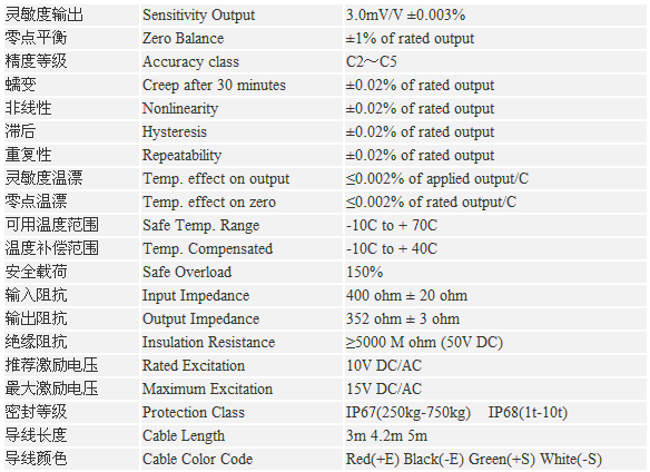 注:1、產品250kg、300kg靈敏度輸出:2.0mV/V ±0.003%;2、SQB-500KG稱重傳感器可選不銹鋼產品;vjJ廣州南創電子科技有限公司