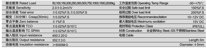 美國Suncells稱重傳感器IL-500kg技術參數圖:SXR廣州南創電子科技有限公司