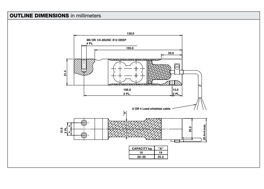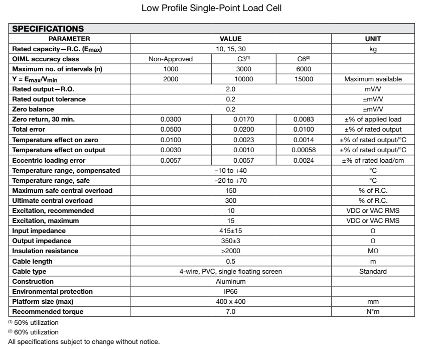 XYF廣州南創電子科技有限公司特迪亞tedea稱重傳感器1033-30KG技術參數圖:XYF廣州南創電子科技有限公司
