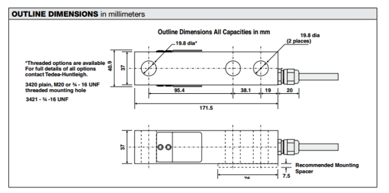 3420-1000LB 3420-2000LB 3420-2500LB稱重傳感器 美國(guó)特迪亞Tedea