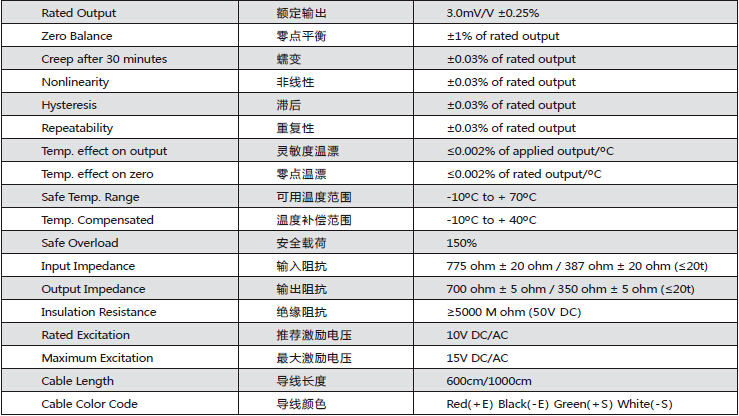 美國Transcell DBSL系列稱重傳感器所有量程如下: 030廣州南創電子科技有限公司