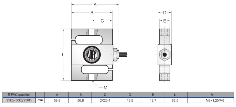 Tm9廣州南創電子科技有限公司美國傳力稱重傳感器BAB系列完整型號:Tm9廣州南創電子科技有限公司BSA-25kg稱重傳感器