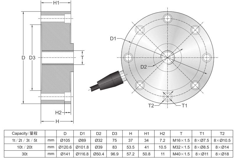 bBO廣州南創電子科技有限公司美國傳力Transcell稱重傳感器DBSL-60T尺寸圖:bBO廣州南創電子科技有限公司