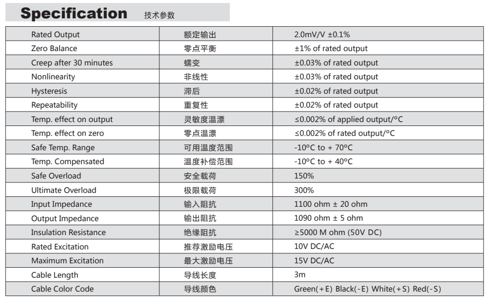 美國傳力Transcell稱重傳感器SBSZ-250kg技術參數圖:XwI廣州南創電子科技有限公司