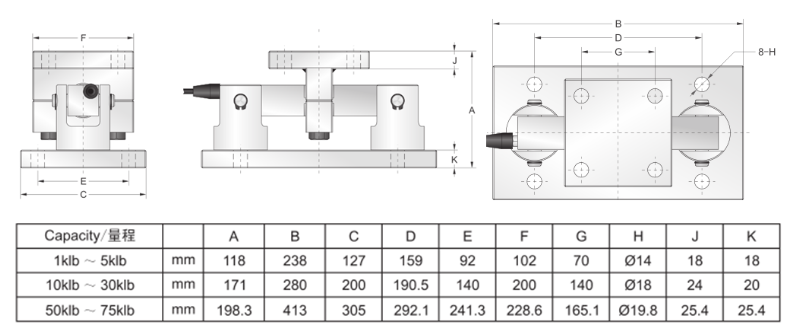 美國傳力Transcell稱重模塊DBS-1K MODULE技術參數圖: