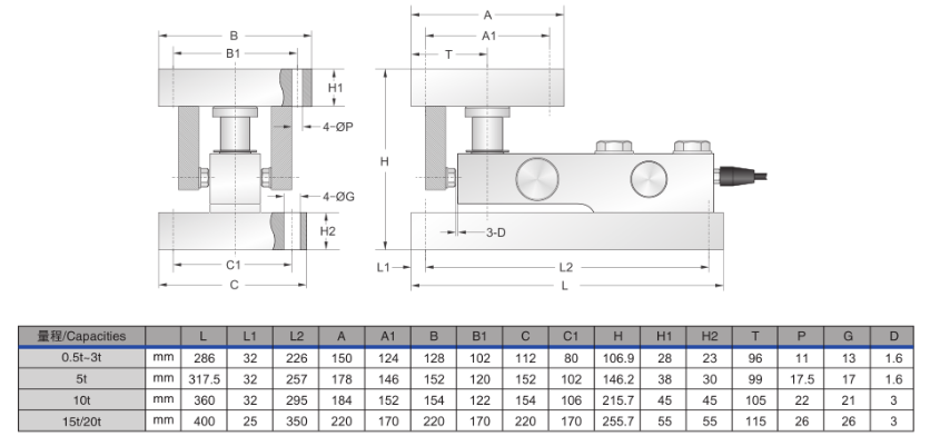 MXI廣州南創(chuàng)電子科技有限公司美國傳力SBT-CW-0.5t MODULE稱重模塊技術圖:MXI廣州南創(chuàng)電子科技有限公司