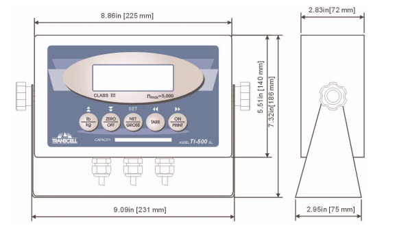 jPP廣州南創電子科技有限公司美國傳力TranscelTI-500SL稱重顯示儀表尺寸圖:jPP廣州南創電子科技有限公司