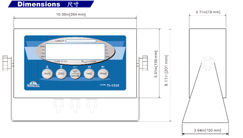 ktF廣州南創(chuàng)電子科技有限公司美國(guó)傳力TranscelTI-1520稱重顯示儀表尺寸圖:ktF廣州南創(chuàng)電子科技有限公司