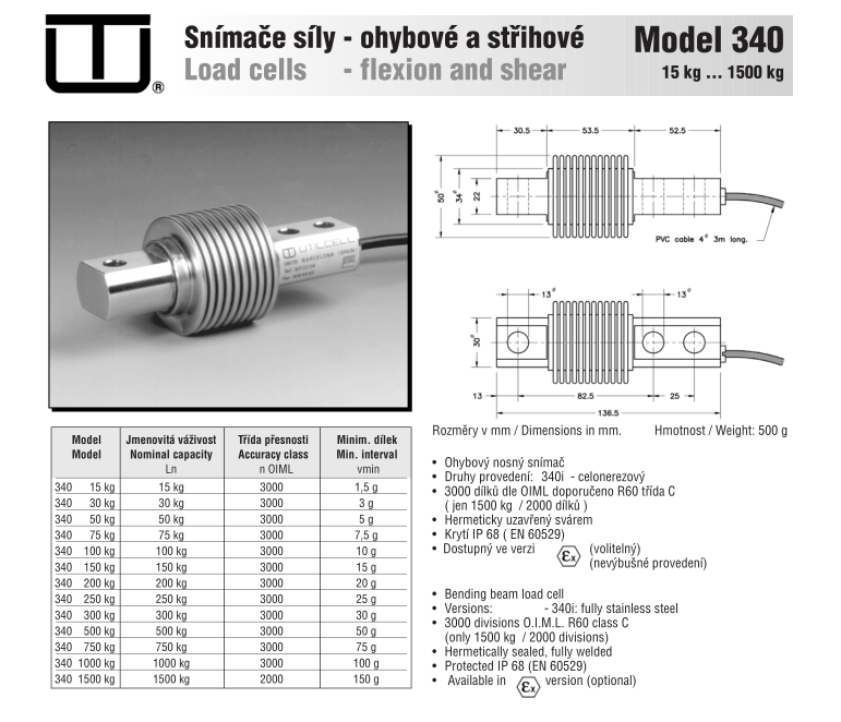 【mod340-1500kg】_西班牙尤梯爾稱重傳感器mod340-1500kg_mod340-1500kg傳感器應用在灌裝, 筒倉和車輛稱重系統,具有高非線性要求、