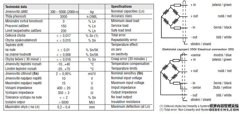 DeL廣州南創電子科技有限公司西班牙尤梯爾Model 350-750kg稱重傳感器技術參數
