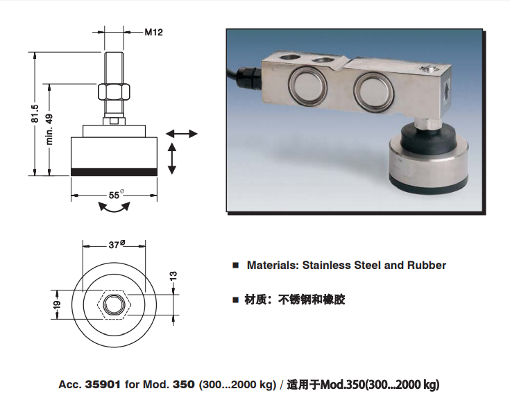pNy廣州南創電子科技有限公司pNy廣州南創電子科技有限公司西班牙稱重傳感器 控制面板上設置的電源指示燈,用于顯示顯示器的通斷電狀態。 上平板底面還設置有防過載限位墊,防過載限位墊與上平板底面用環氧樹脂粘合。 經由上述的技術方案可知,與現有技術相比,本發明公開提供了一種大量程稱重傳感器,其信號檢測電路采用八臂電橋,八臂電橋結構大大增加稱重傳感器量程的同時,通過敏感元件的合理設置,實現了快速高分辨率信號采集,可進一步提高稱重傳感器的稱測精度和一致性,并節省了電路布置空間。