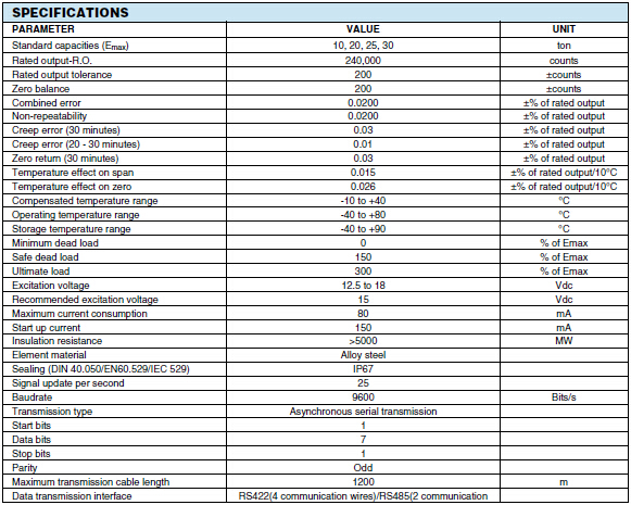 美國Celtron稱重傳感器MDBD-30T產品參數:FUG廣州南創電子科技有限公司