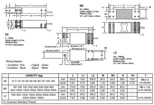 美國世銓Celtron LOC系列稱重傳感器所有量程如下:tMd廣州南創電子科技有限公司