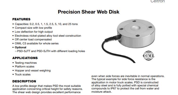 美國Celtron PSD-10tSJTT稱重傳感器特點:Uob廣州南創電子科技有限公司