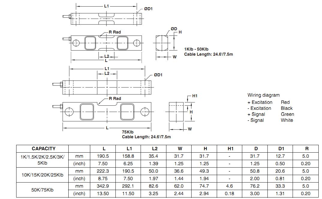 美國vishay Celtron稱重傳感器所有量程如下: ZXL廣州南創電子科技有限公司