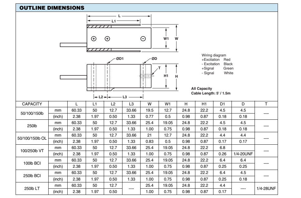 PN2廣州南創電子科技有限公司PN2廣州南創電子科技有限公司美國vishay celtron稱重傳感器 MBB-120kg產品尺寸圖:PN2廣州南創電子科技有限公司