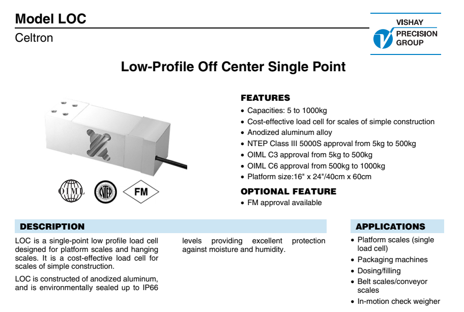 美國(guó)vishay celtron稱重傳感器 LOC-1000kg產(chǎn)品技術(shù)參數(shù):BfR廣州南創(chuàng)電子科技有限公司