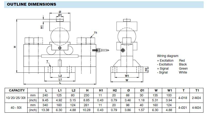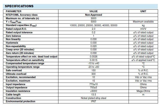Standard capacities (Emax) kg 10000, 20000, 25000, 30000, 40000, 50000