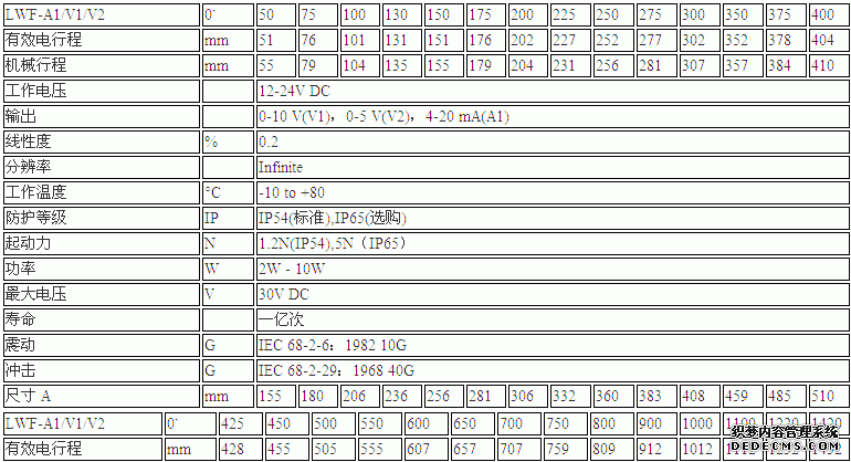 德國VOLFA LWF-300-A1直線位移傳感器參數圖:oyj廣州南創電子科技有限公司