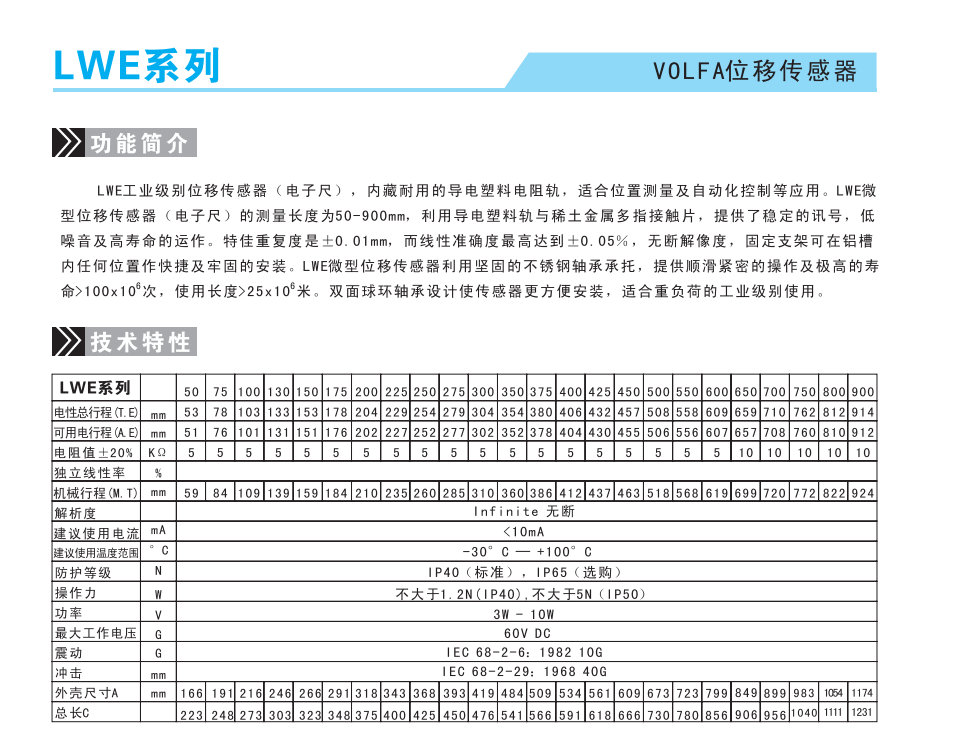 LWE-300 Volfa位移傳感器型號類別技術參數選型安裝等資料信息,如果有關