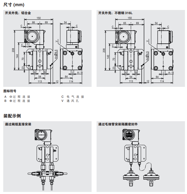 tag廣州南創電子科技有限公司過程連接的中心距為54mm,徑向安裝時可以簡單的安裝一個標準的閥組。