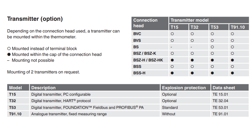 TR21-B型熱電阻溫度計(jì)適用于衛(wèi)生型應(yīng)用中-30 ... +150 °C的液體及氣體介質(zhì)的溫度測(cè)量。當(dāng)應(yīng)用于危險(xiǎn)區(qū)域時(shí),可提供本安型。Un4廣州南創(chuàng)電子科技有限公司
