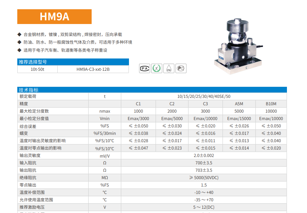 HM9A-C3-50t-16B ZEMIC LOAD CELL型號類別技術參數選型安裝等資料信息,如果有關