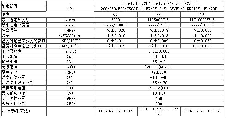 H3F-C3-100kg-6T稱重傳感器補償范圍 (℃) -10~+4050VDC)